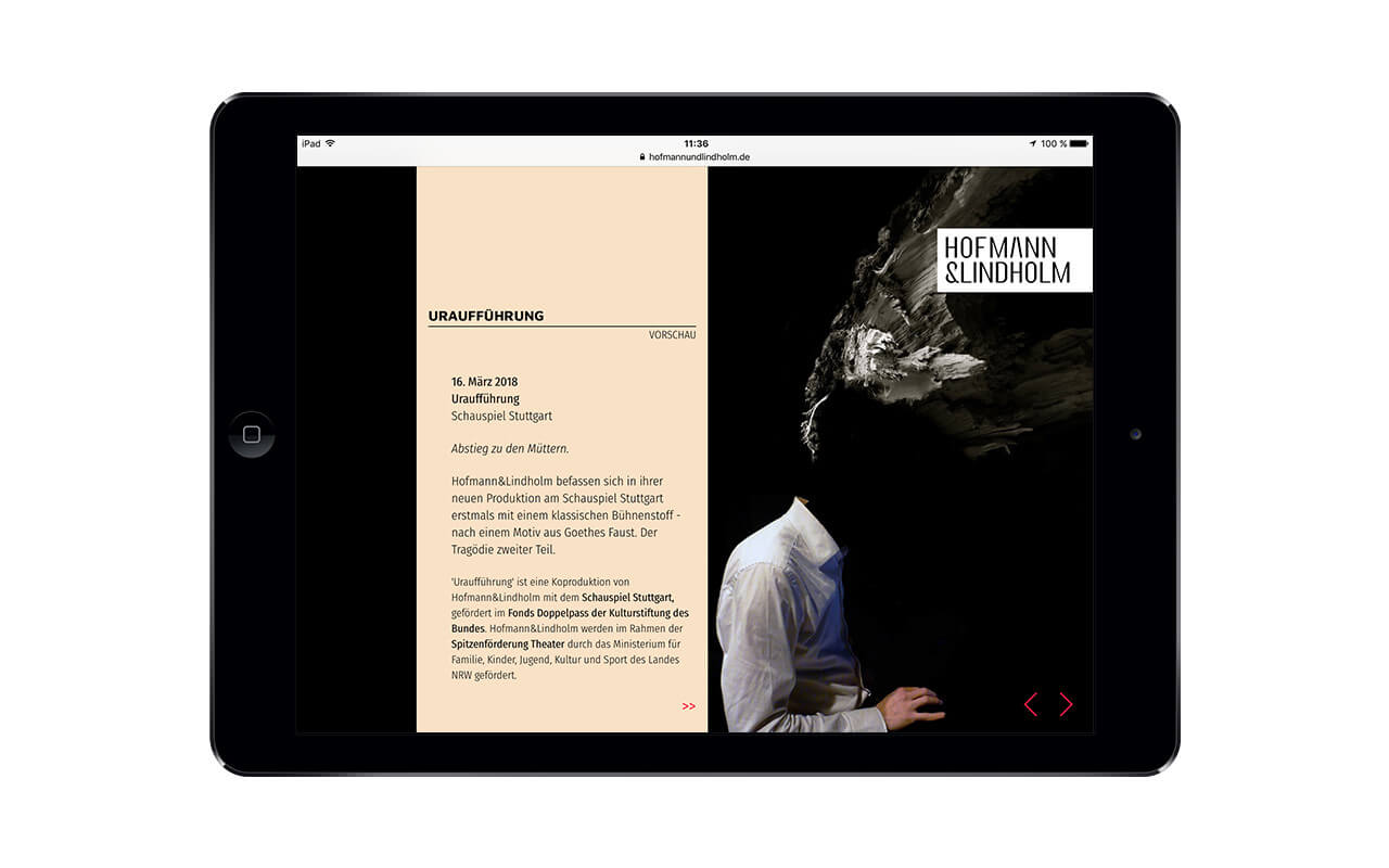 Umso mehr freute es mich, den Relaunch ihrer Homepage zu realisieren, in enger gestalterischer Zusammenarbeit mit Hannah Hofmann, eine angemessene Darstellung ihrer künstlerischen Projekte zu finden und ihnen ein Instrumentarium in die Hand zu geben, mit dem sie ihren Internetauftritt in Zukunft problemlos fortschreiben können.